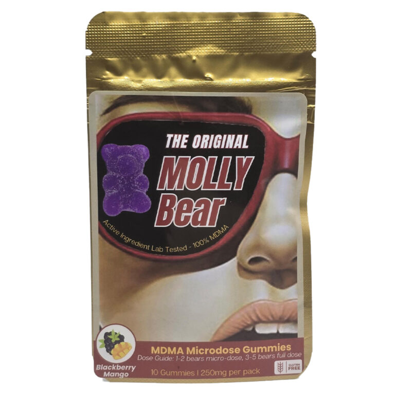MDMA is a popular therapeutic psychedelic that alters mood and perception. It is often associated with feelings of emotional closeness, increased empathy, and heightened sensory perception. MDMA’s effects typically include enhanced sociability, a sense of emotional well-being, and increased energy. All this goodness packed into yummy gummy bears just waiting to be eaten! Buy Molly Bear MDMA Gummies – Blackberry Mango
